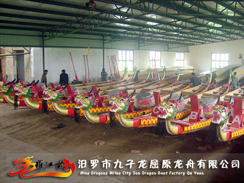 汨羅市九子龍屈原龍舟有限公司2013年成立于湘楚文化屈原圣地-----汨羅江畔。它既是龍舟競渡的源頭,又是祖輩制造龍舟的基地。廠長許桂生從事龍舟制作已有30余年歷史,為繼承祖?zhèn)髦圃忑堉鄹挥幸欢ǖ慕?jīng)驗。我廠是全國新型混合龍舟生產(chǎn)基地;中國龍舟協(xié)會器材委員會委員;通過了ISO9001國際質(zhì)量體系認(rèn)證。本廠其獨特的制作工藝成為了非物質(zhì)文化遺產(chǎn)傳承廠家。自一九八九年開始生產(chǎn)國際標(biāo)準(zhǔn)龍舟以來,岳陽市歷屆賽事龍舟均由本廠員工生產(chǎn),湖南省岳陽九子龍龍舟公司生產(chǎn)的龍舟都是現(xiàn)任廠長負(fù)責(zé)技術(shù)和組織工人的,其產(chǎn)品曾銷往北京第六屆民運會、上海三龍邀請賽、上海第四屆錦標(biāo)賽、吉林冬運會。現(xiàn)在本廠融入沿海玻璃鋼技術(shù),保留了傳統(tǒng),提高了產(chǎn)品質(zhì)量,現(xiàn)生產(chǎn)各種型號國際標(biāo)準(zhǔn)龍舟及各種民間龍舟...